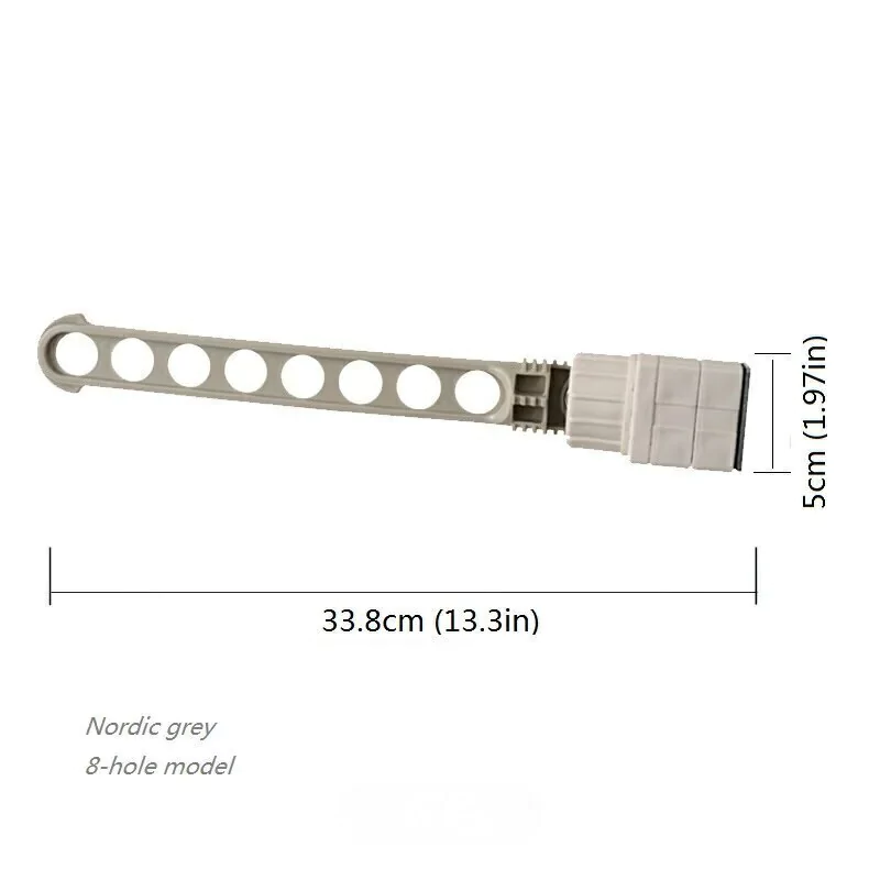 O gancho possui furos estrategicamente posicionados para maximizar o número de peças que podem ser penduradas sem que elas se toquem, garantindo uma secagem uniforme e rápida. Seu mecanismo dobrável permite que ele se transforme em um gancho compacto, ideal para guardar em armários ou malas. Além disso, seu design ergonômico facilita o manuseio e a fixação em varais, cabides ou outros suportes.